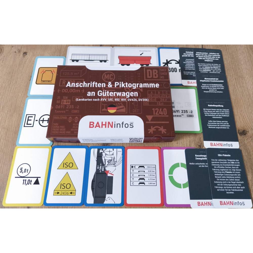 Unsere Eigenentwicklung: 176 Lernkarten zum Thema "Anschriften, Zeichen und Piktogramme an Güterwagen im deutschen und europäischen Eisenbahnbetrieb":