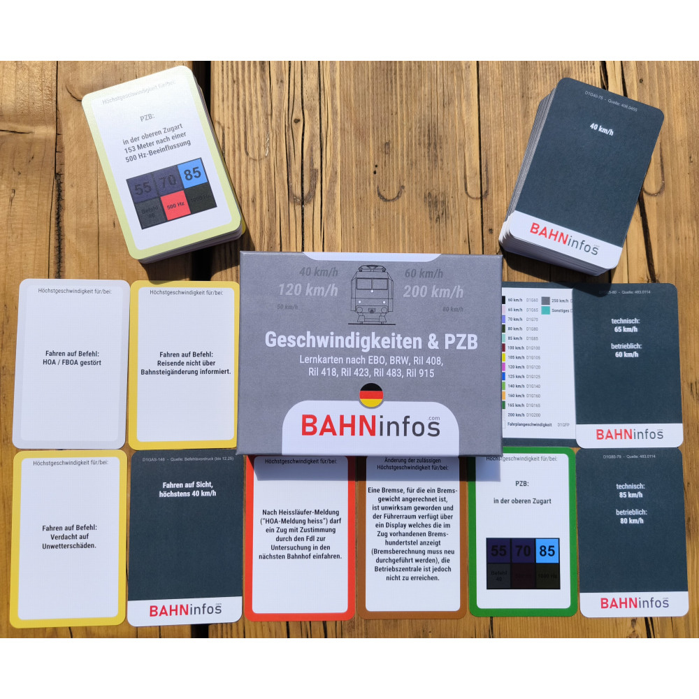 Unsere neue Eigenentwicklung - 220 Lernkarten zum Thema Geschwindigkeiten im deutschen Eisenbahnbetrieb: Dieses Lernkartenset dient als praktische Lernhilfe bei Schulungen, Lehrg&aum..