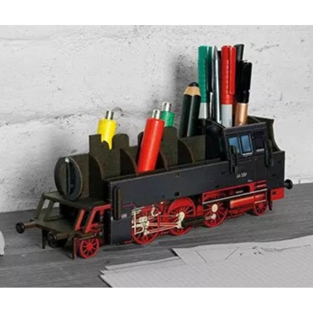 Bringen Sie Eisenbahnflair in ihr Büro, mit dieser Stiftebox als Nachbildung einer Dampflokomotive der Baureihe 64.