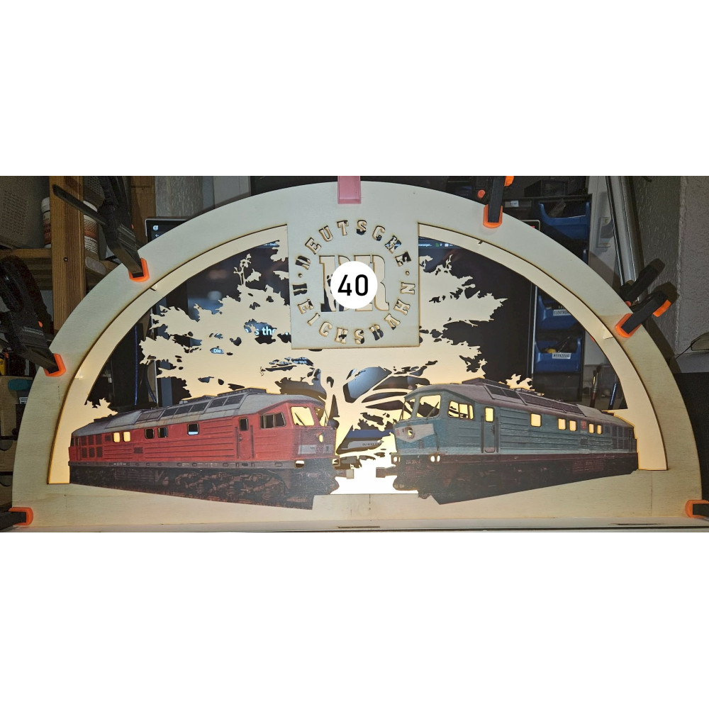 Schnellsuche Eisenbahn, Schwibbogen, Konfigurator, Weihnachten, Winter, Dekoration, Bahn, Lokomotiven, Reichsbahn, Bundesbahn