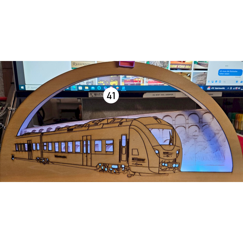 Eisenbahn-Schwibbogen Berliner S-Bahn BR 475 und 485 farbig - 60cm lang
