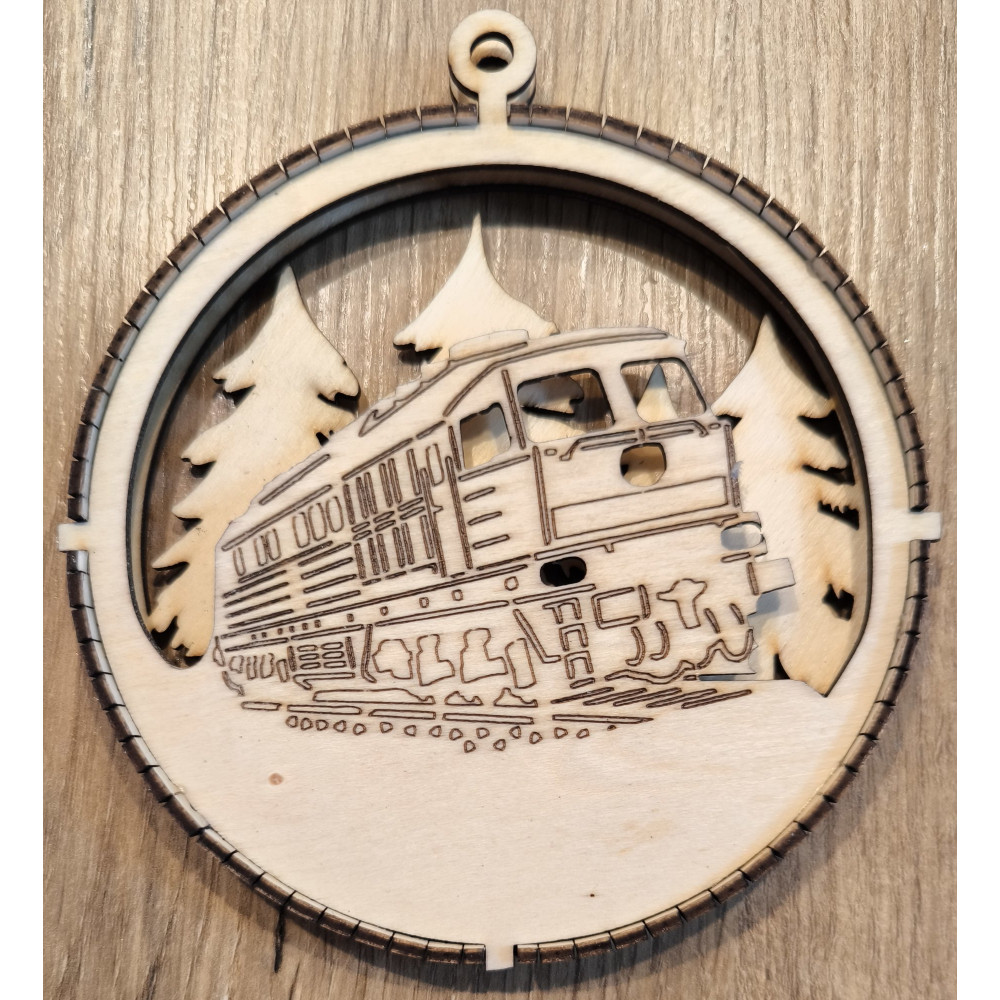 Christbaumschmuck oder Fensterschmuck mit gelaserter Gravur einer Diesellok der Baureihe 130/232 "Ludmilla".