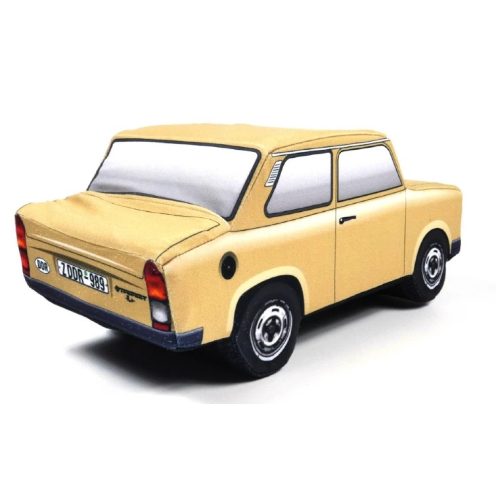 Plüschkissen / Dekorationskissen Nachbildung von: Trabant 1.1 Limousine Universal Farbe: gelb Beschriftungsvariante: - Größe: 30x12x13cm Maßstab: 1:1..