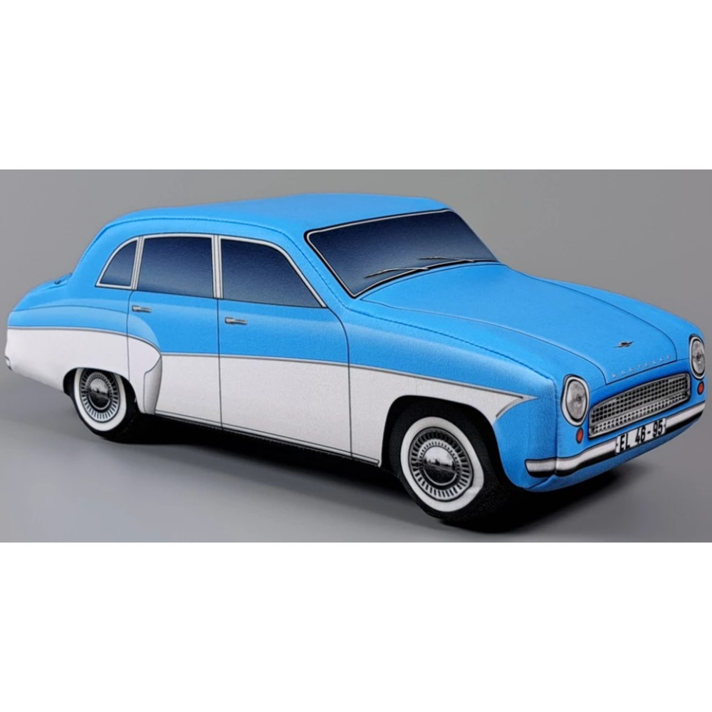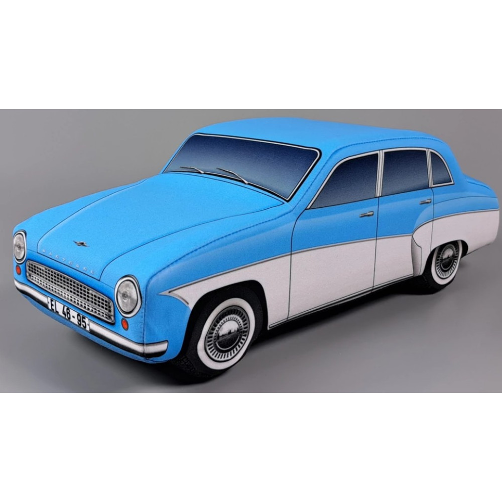 Plüschkissen / Dekorationskissen Nachbildung von: Trabant 601 Limousine Farbe: hellblau Beschriftungsvariante: - Größe: 43x18x17cm Maßstab: 1:8,3 Gewicht:..